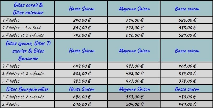 Moyenne saison : 31 juin au 31 aout 16 octobre au 14 décembre